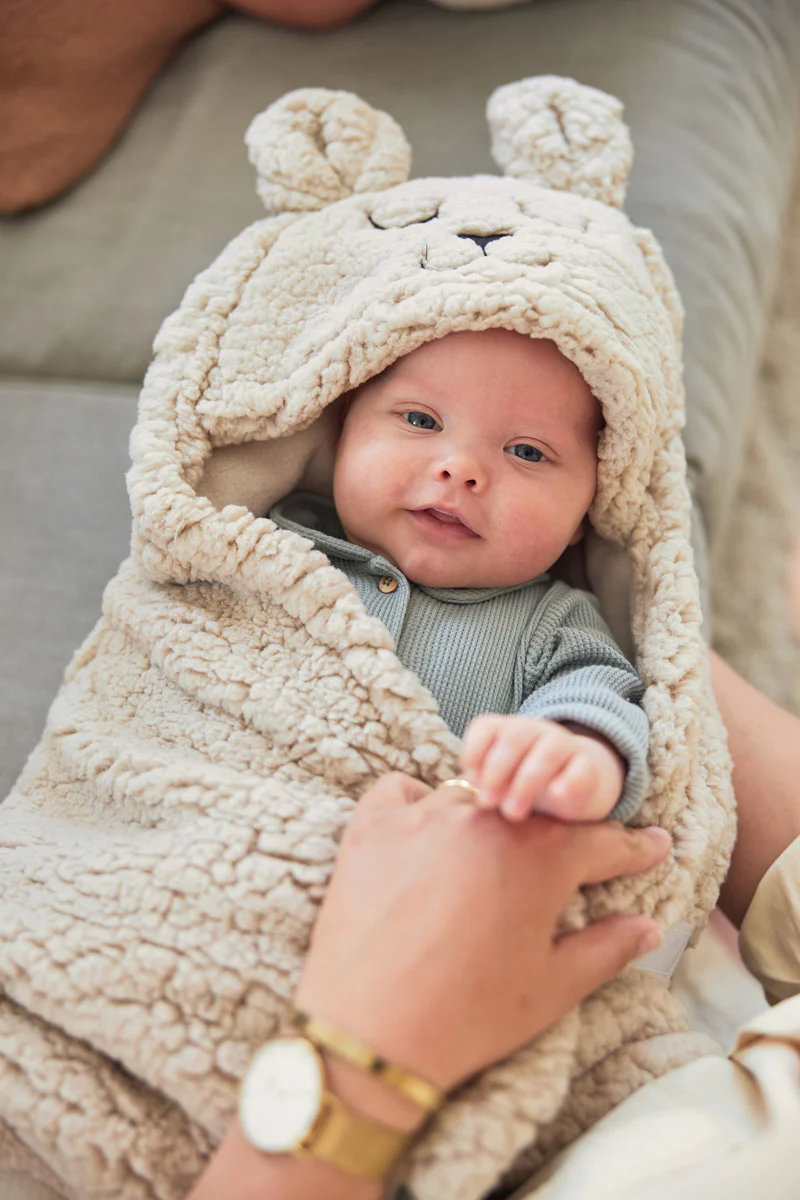 Enveloppez votre bébé dans cette couverture et fermez là à l’aide des bandes Velcro pratiques.
