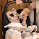 Papa et maman peuvent facilement m’accrocher à la poussette, au siège auto ou au parc pour que tu puisses t’amuser avec moi.