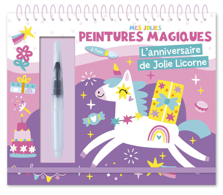 Il suffit de remplir le réservoir du pinceau avec de l’eau, puis de le passer sur l’un des dessins pour que des couleurs éclatantes apparaissent comme par magie !