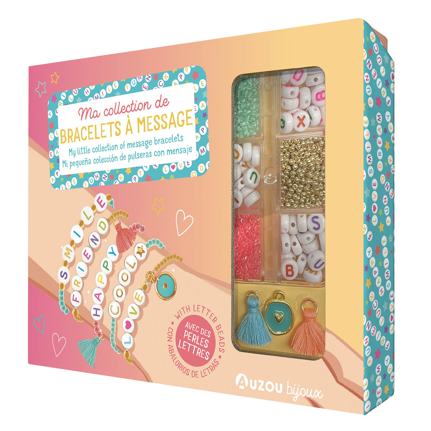 Réalise une jolie accumulation de 5 bracelets à messages grâce à tout le matériel de ton coffret !