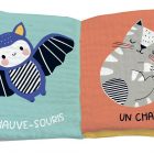 Un premier imagier de la nuit sous la forme d’un petit livre tissu en lange tout doux.