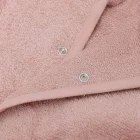 Il est doté d’un bouton pression pratique pour le maintenir fermé lorsqu’il est porté, d’un élastique dans le dos pour un ajustement parfait et la ceinture est attachée au peignoir pour que tu ne puisses pas la perdre.