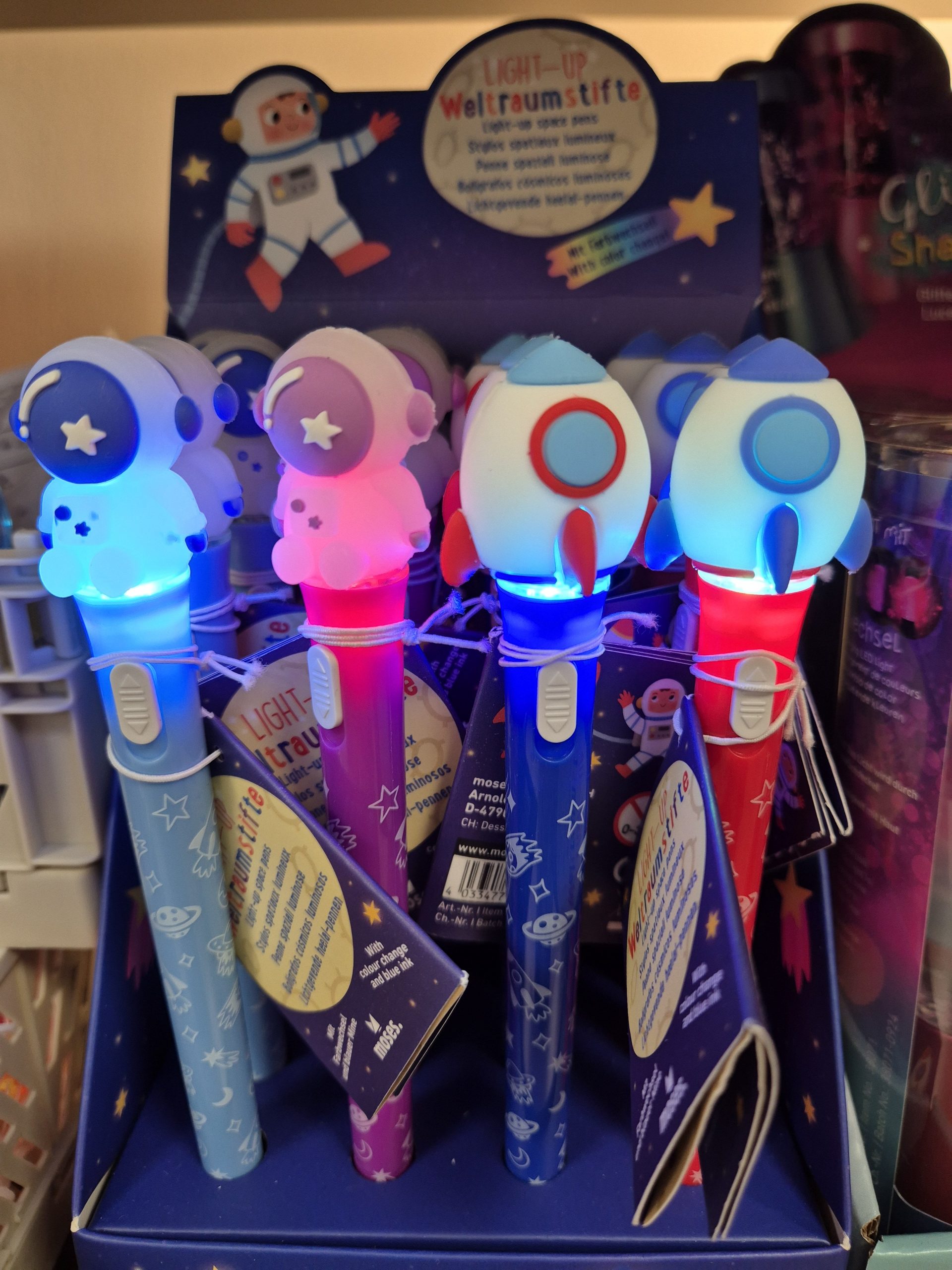 4 modèles disponibles : Astronaute Bleu, Astronaute Violet, Fusée Bleu, Fusée Rouge.