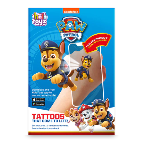 Les tatouages temporaires Pat Patrouille prendront vie dans une animation à couper le souffle lorsqu’ils seront numérisés avec l’application HoloToyz.